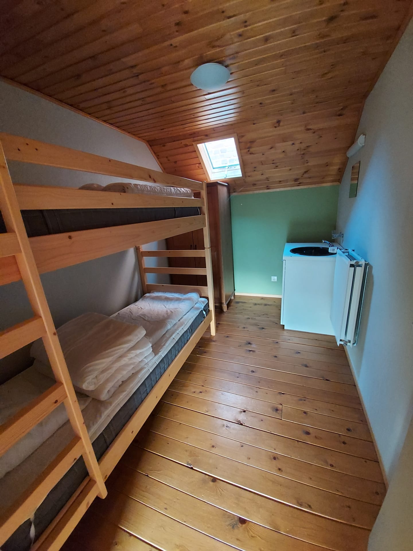 Kamer 2 : 1 stapelbed (2x1 persoonsdonsdeken), kast, lavabo
