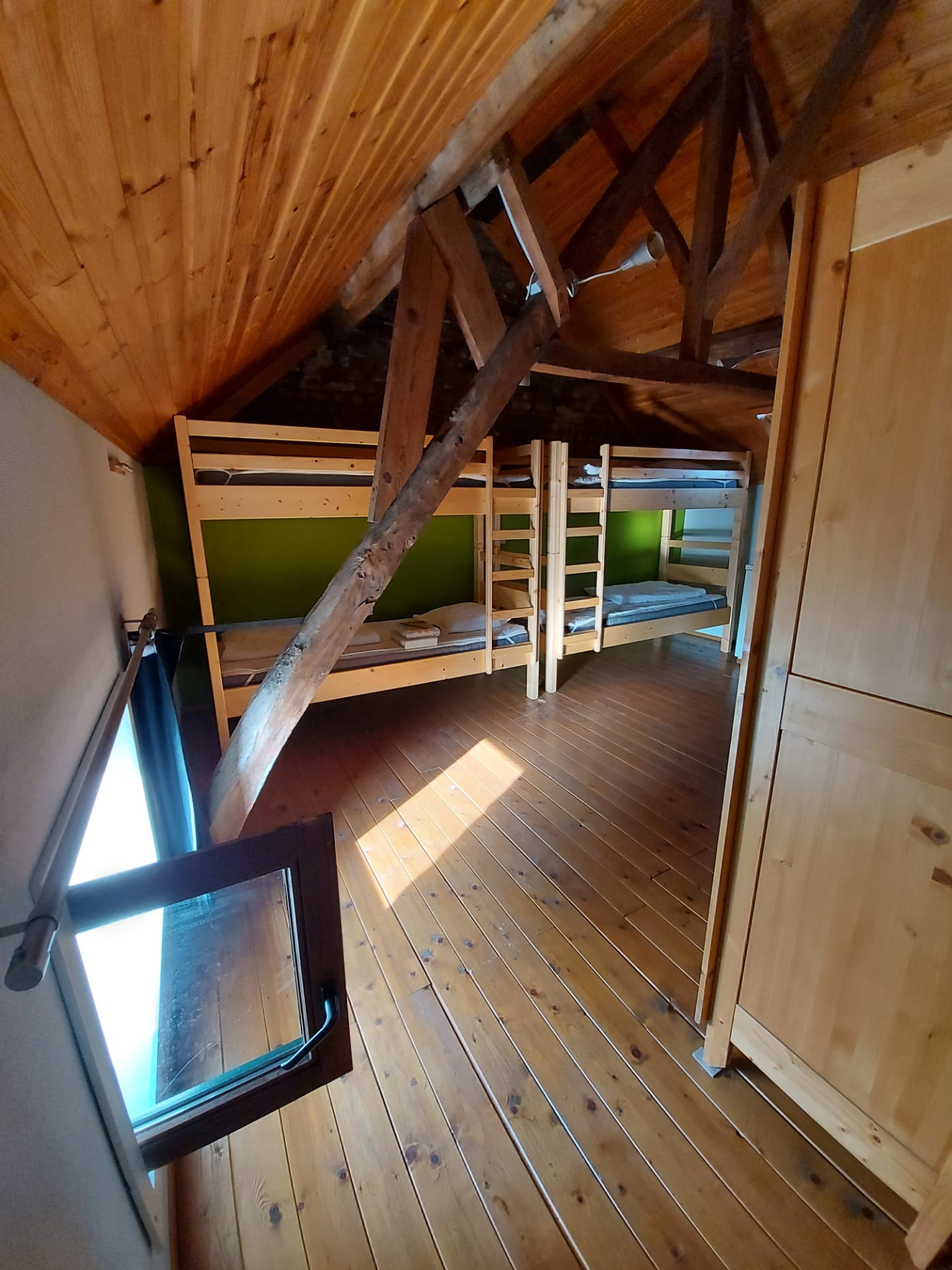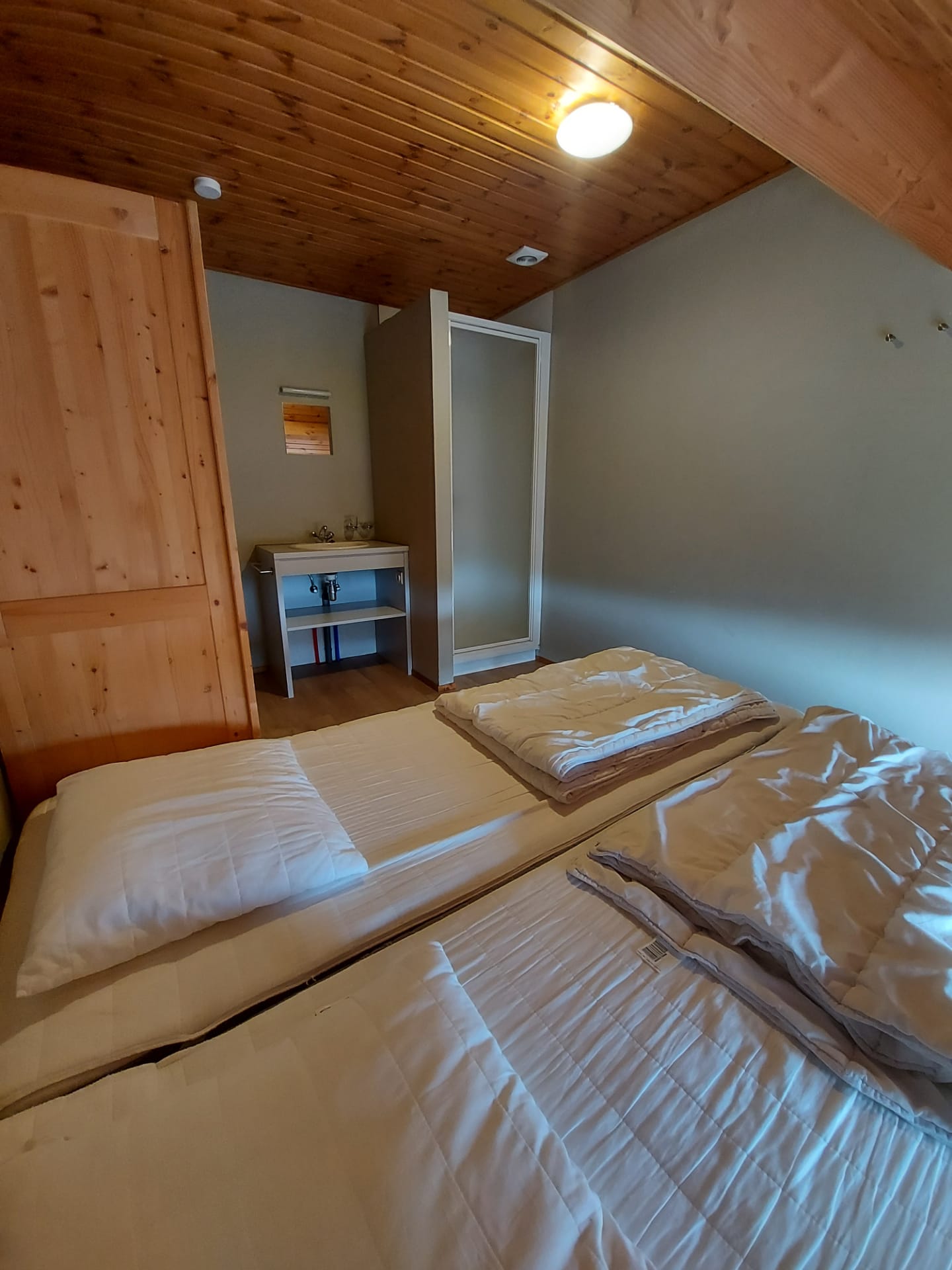 Kamer 8 : 2x1-persoonsbed en 1 stapelbed (4x1 persoonsdonsdeken), kast, lavabo, douche