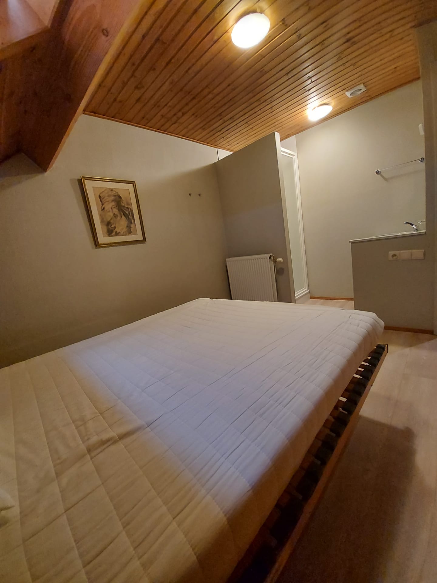 Kamer 6 : dubbel bed 1m60 + 1 bed 0.80m (3x1 persoonsdonsdeken), kast, lavabo, douche